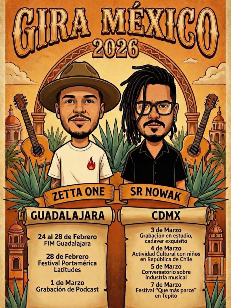 Sr. Nowak y Zetta One son dos raperos de Medellín que realizarán una gira por México entre febrero y marzo de 2026; allí ofrecerán presentaciones en vivo, espacios de intercambio artístico, ideas y la participación en uno de los mercados musicales más importantes de Latinoamérica en Guadalajara.